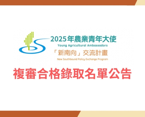 複審時段公告-2024年農業青年大使新南向交流計畫